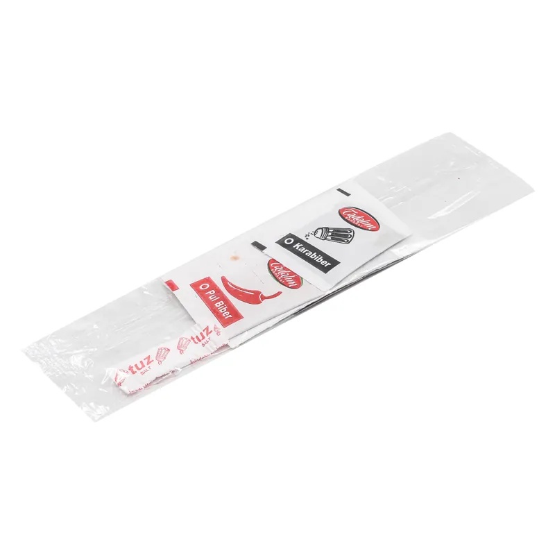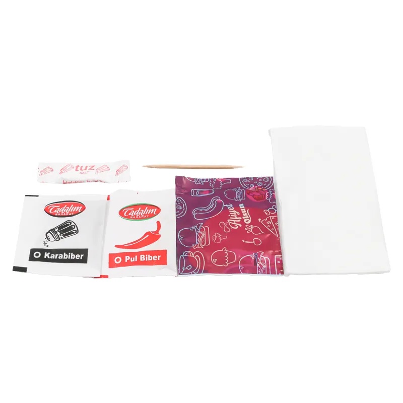 Tuz, Kürdan, Peçete, Karabiber, Pulbiber, Islak Mendil bulunmaktadır.