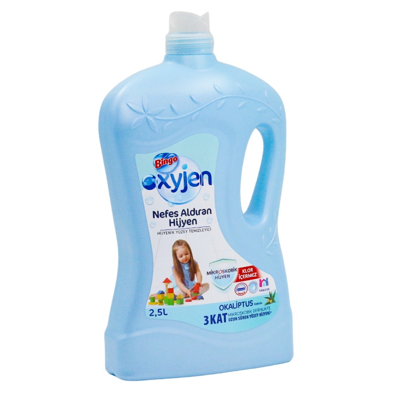 Bingo Oxyjen Hijyenik Yüzey Temizleyici, ekstra çamaşır suyu kullanımı gerektirmeden, mikroskobik hijyen teknolojisi ile yüzeylerde 3 kat uzun süre hijyen sağlar. Formülünde klor bulundurmadığından yapısı gereği keskin ve yoğun kokulu bir ürün değildir.