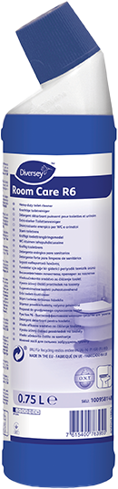 Diversey Taski Room Care R6, ağır kirler için klozet temizlik ürünüdür. Klozet temizleyicinin hacmi 750 Ml' dir. Toptan satışlar için www.angunstore.com adresini ziyaret edebilirsiniz.