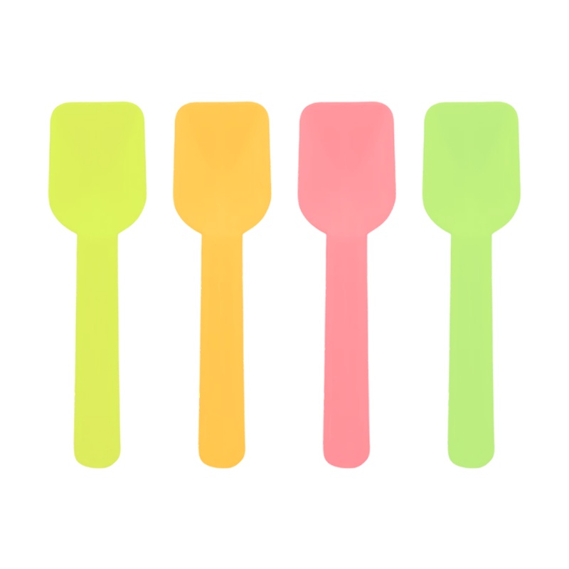 Bu kaşıklar, tatlı ve dondurma sunumu yapan işletmelerde şık bir sunum sağlamak için kullanılabilir. PP malzemesi, dayanıklı ve hafif olması nedeniyle sık kullanılan bir malzemedir. Bu kaşıkların karışık renklerde sunulması, farklı renklerin bir arada kullanılmasına olanak tanır ve sunumu daha ilgi çekici hale getirir.