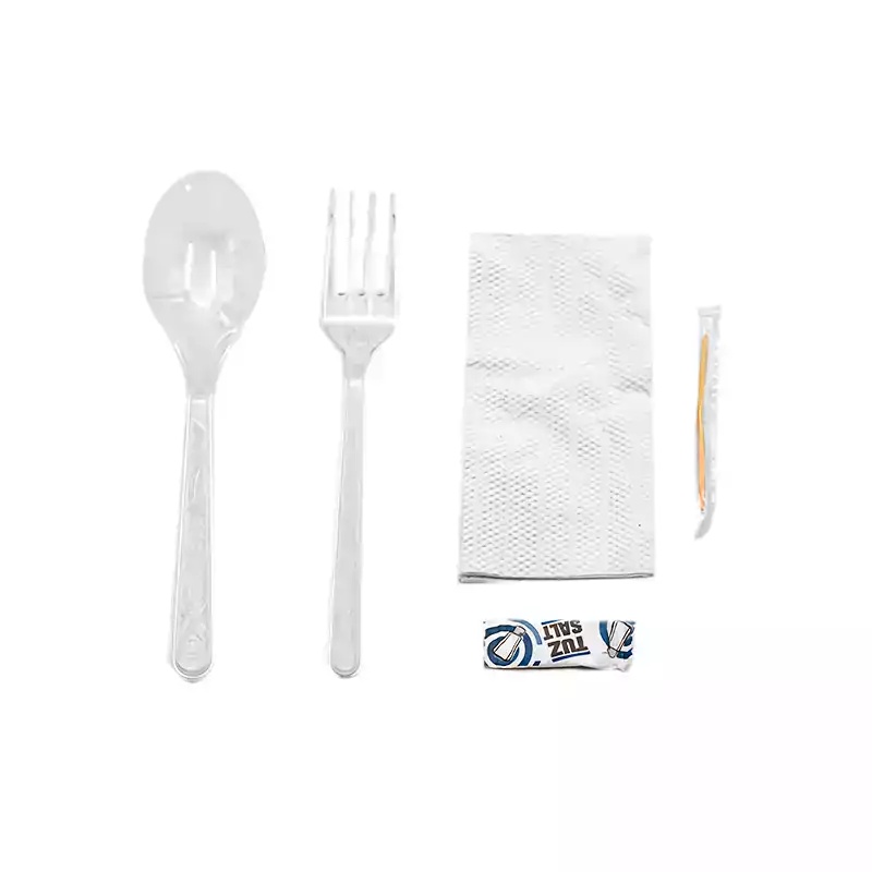 Plastik çatal, kaşık, kürdan, tuz ve peçete bulunmaktadır.